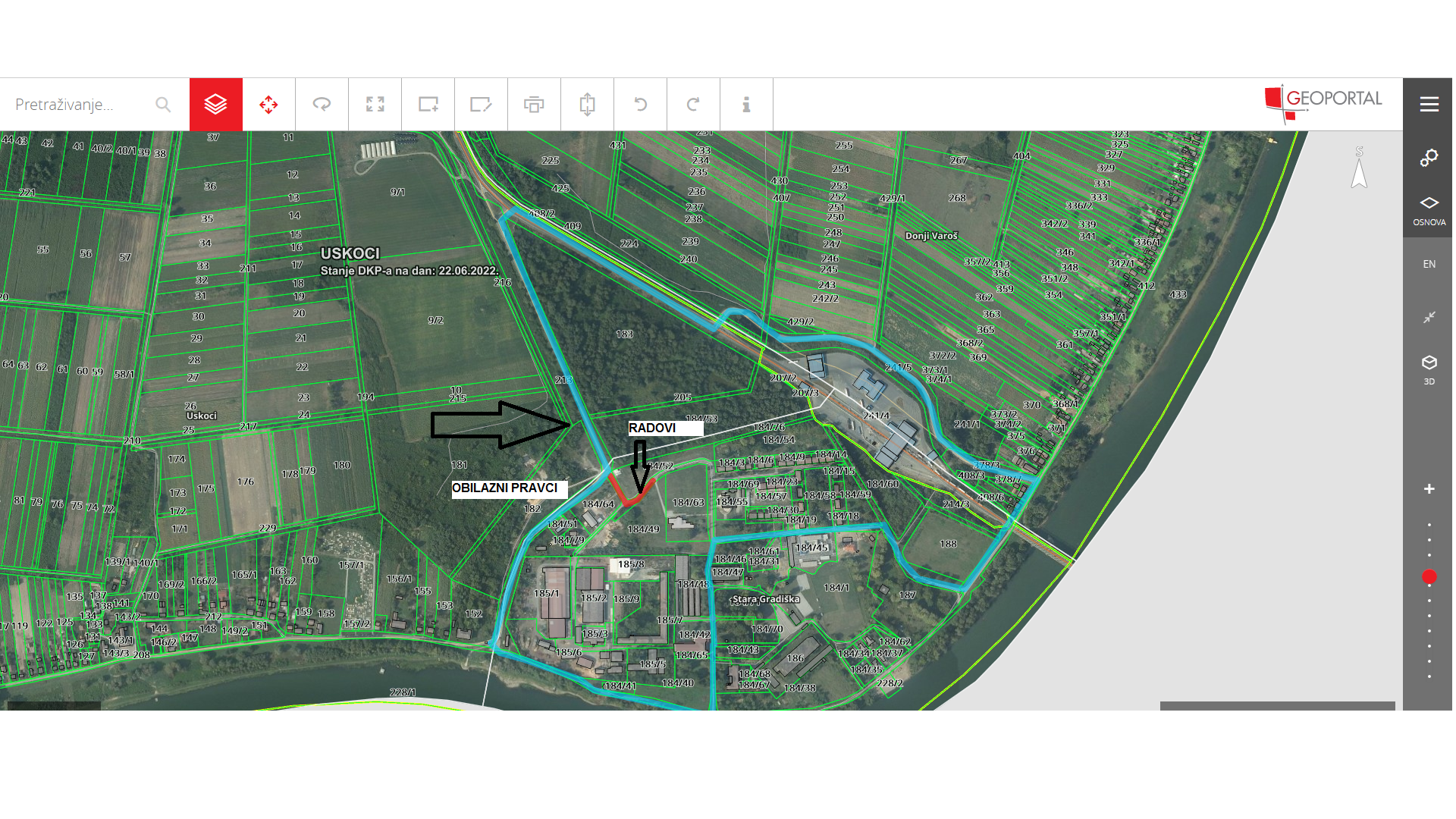 Za prometovanje prema naselju Stara Gradiška i obratno koristiti će se cestovni pravac D5 Donji Varoš-Stara Gradiška i nasip uz rijeku Savu (Obala slavonskih graničara).